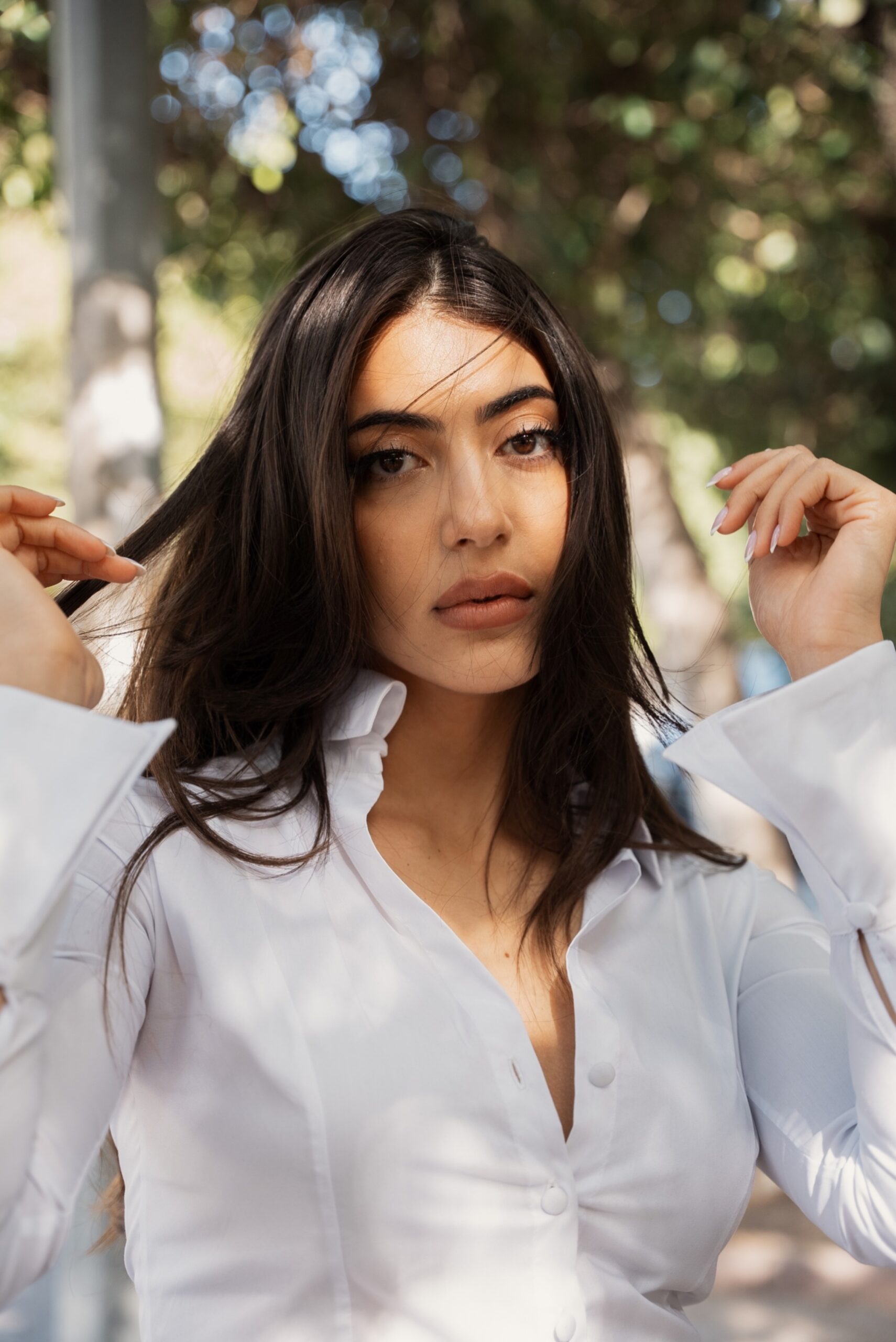 The Ivory Shirt is cut from crisp cotton poplin that holds its shape while feeling soft against the skin. It’s fitted through the body, creating a clean, flattering line. The small Asian-style buttons add a subtle touch of character — simple, timeless, and a little unexpected.